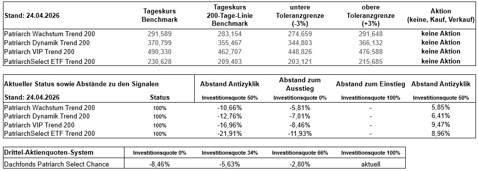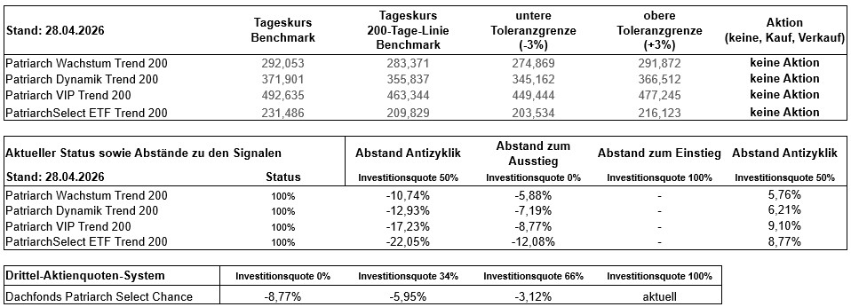 Überwachung der Benchmark-Kurse und Antizyklik der PatriarchSelect Trend 200-Strategien