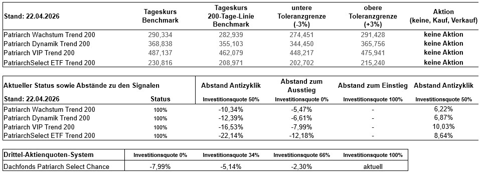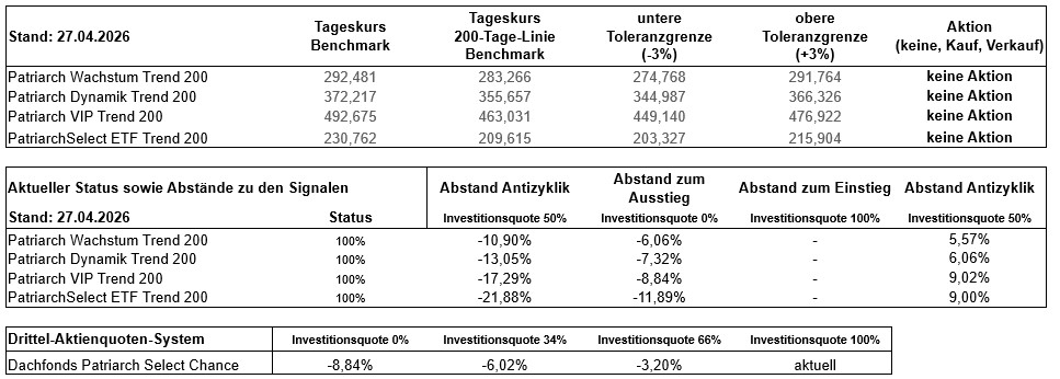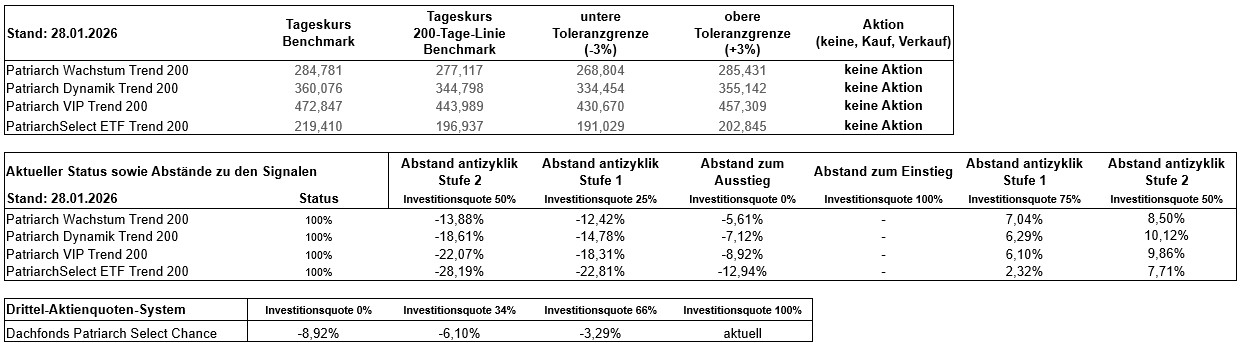 Überwachung der Benchmark-Kurse und Antizyklik der PatriarchSelect Trend 200-Strategien